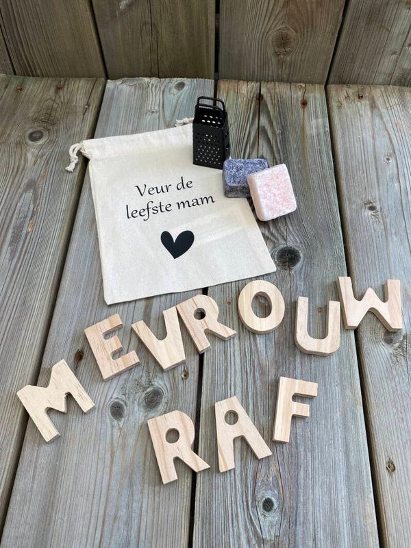 Cadeauzakje ''Leefste mam'' + rasp en 2 amberblokjes