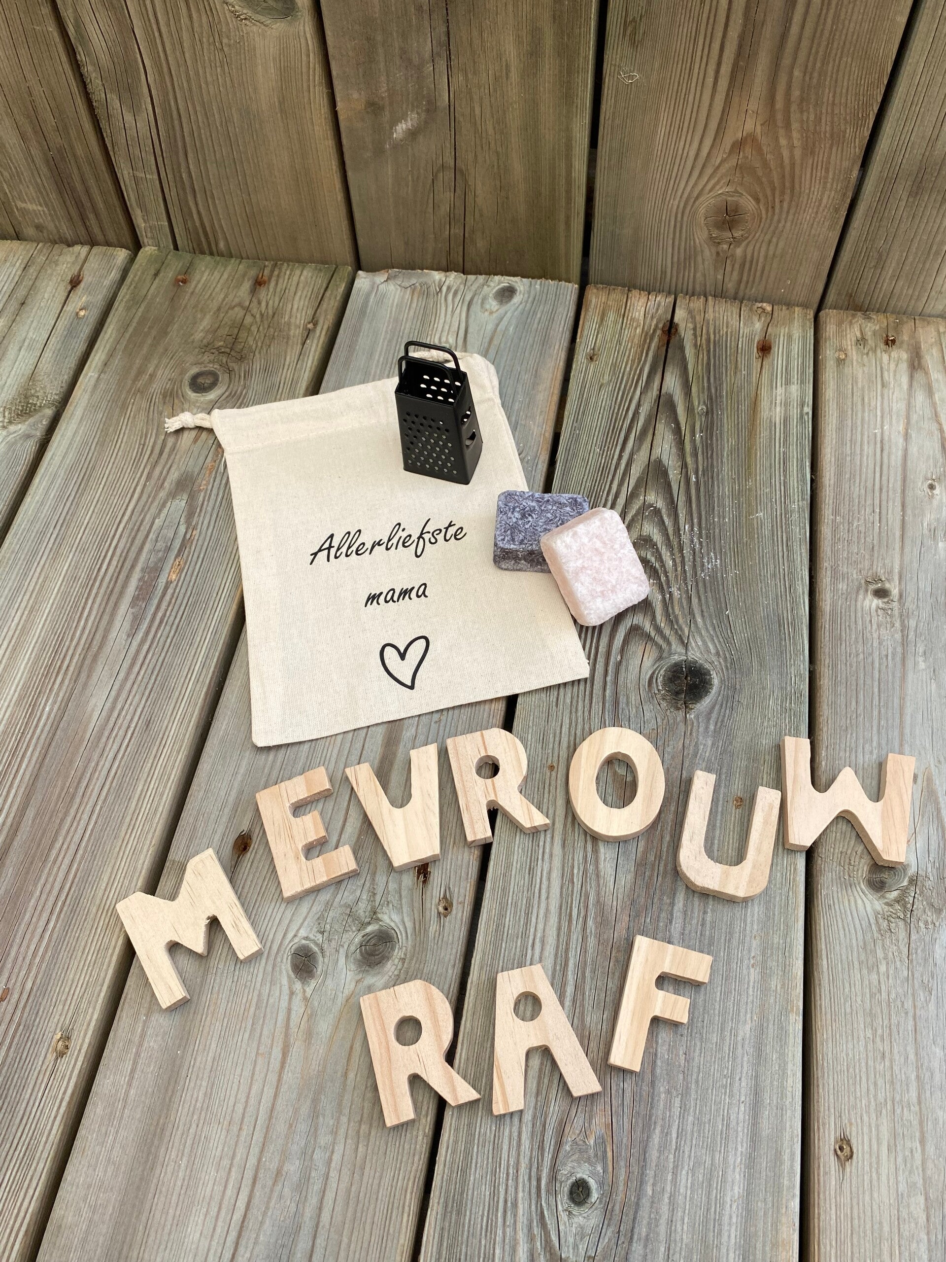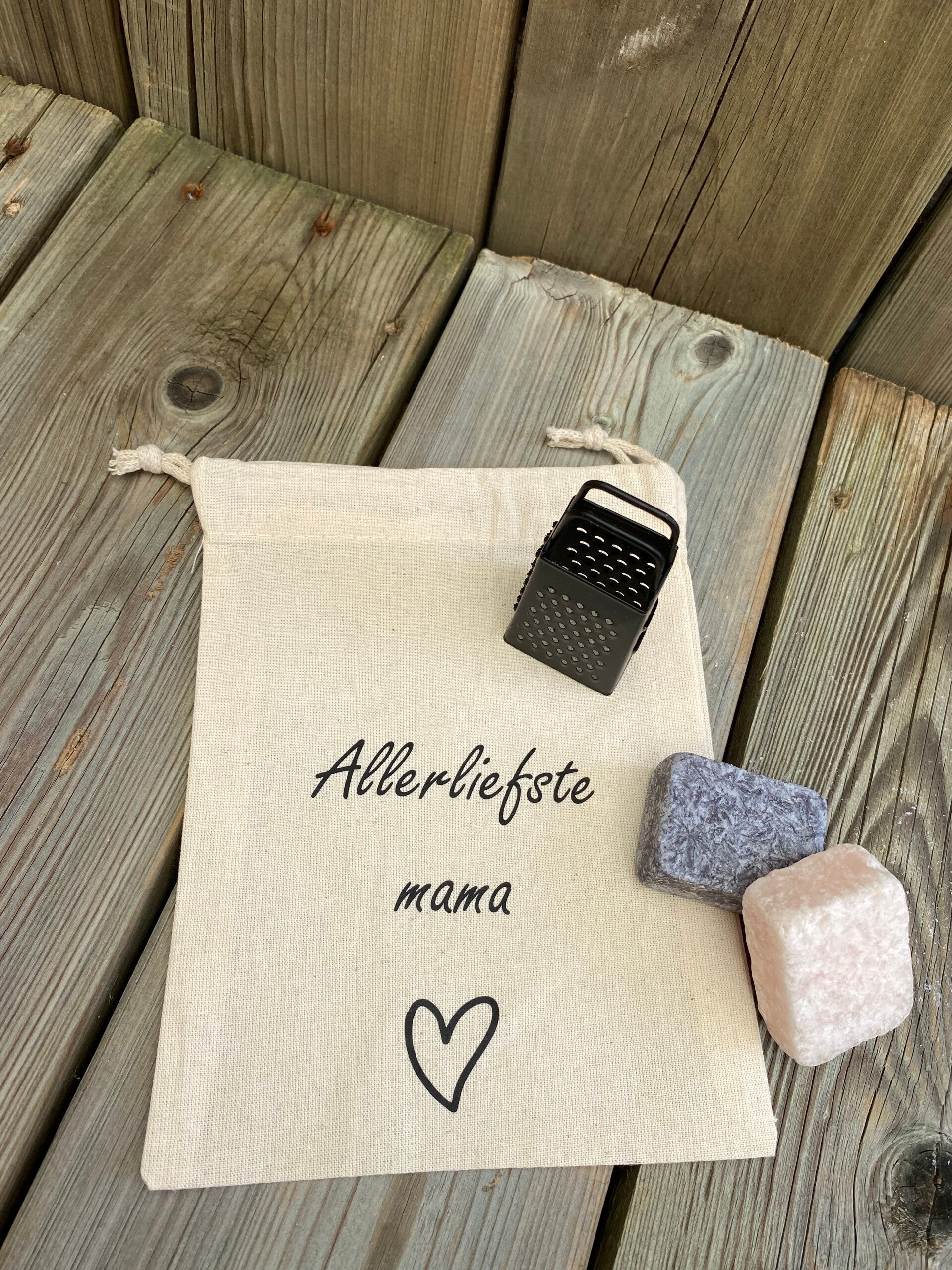 Cadeauzakje ''Allerliefste mama'' + rasp en 2 amberblokjes